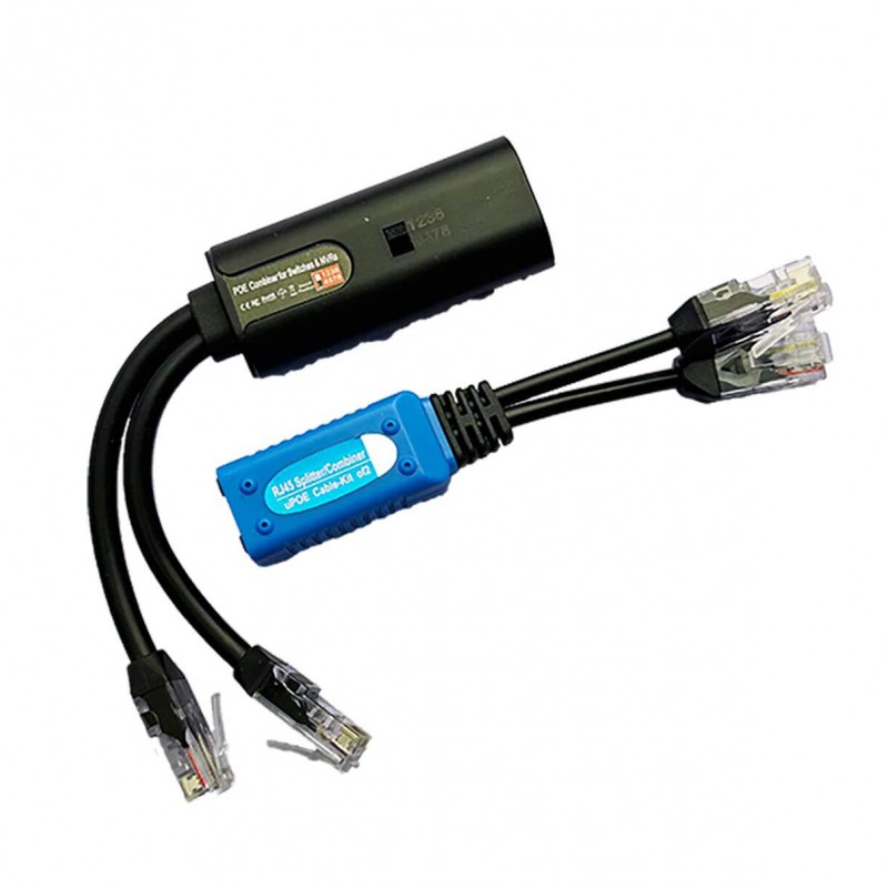 PoE сплитер, комплект приемник и предавател; позволява пускането на PoE захранване и сигнал от 2 IP камери по един мрежов кабел